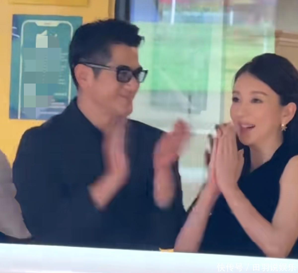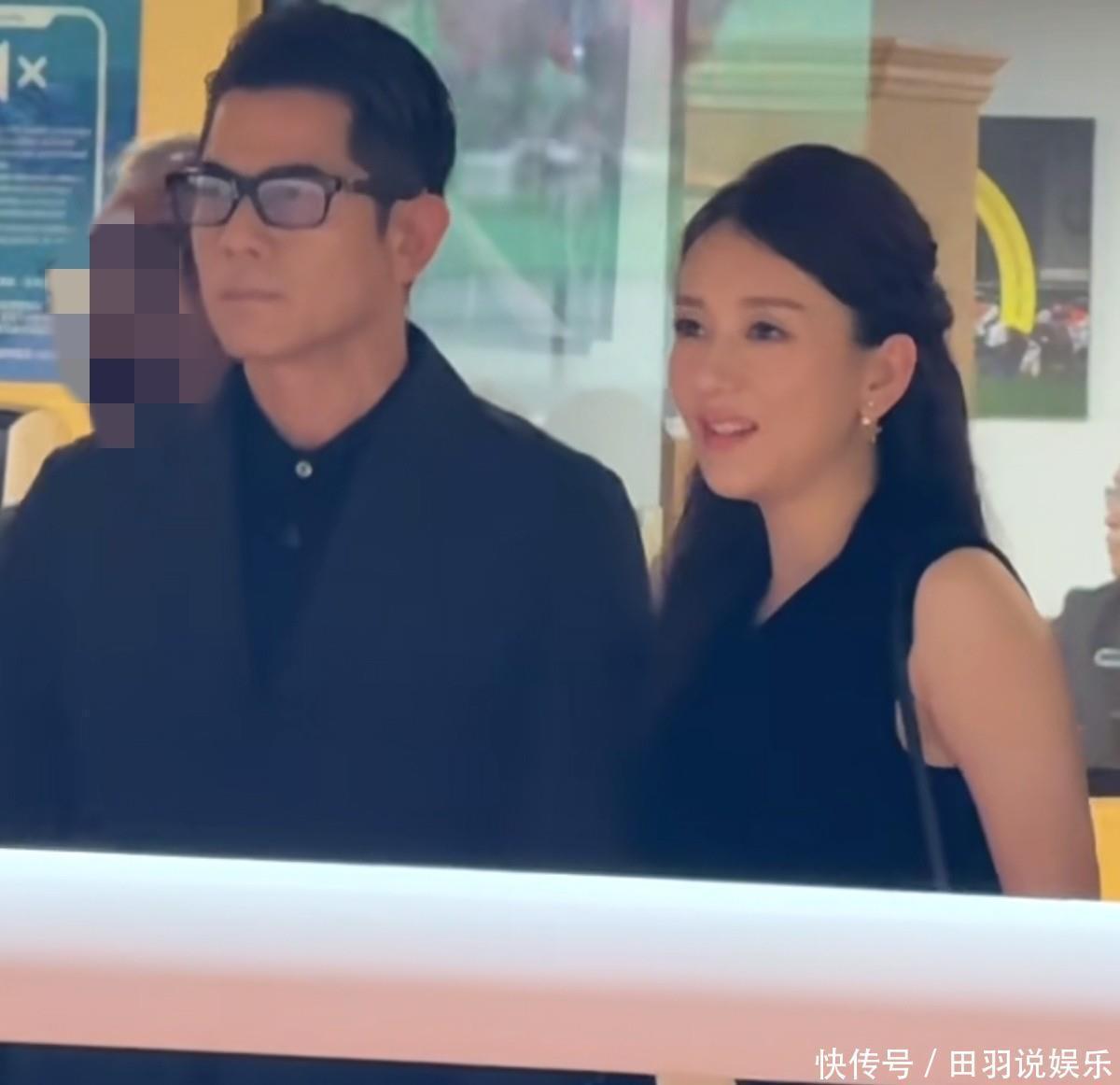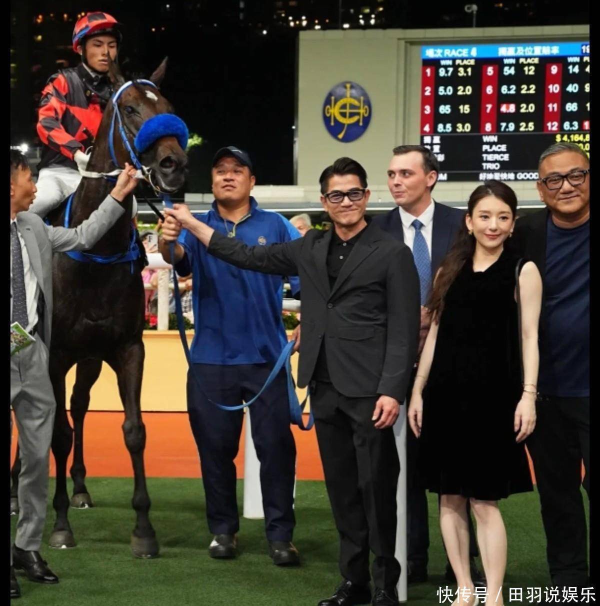 方媛穿黑裙挺大肚陪老公看赛马!爱驹夺冠,郭富城感谢老婆带好运